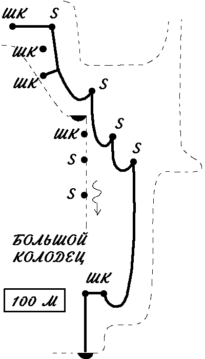 ). Следующий за колодцем уступ провешивается той же веревкой за Ш.К. на